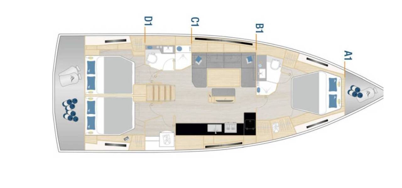 Möglichkeit der Charterverwaltung mit Noa Yachting mit Sitz in der Marina Kaštela, Kroatien, und anderen Nautic Alliance-Stützpunkten weltweit (je nach Verfügbarkeit der Liegeplätze).